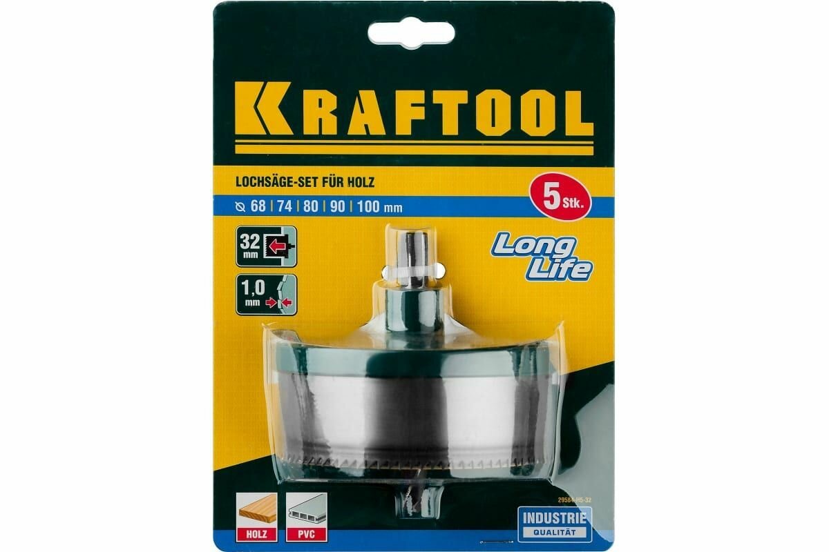KRAFTOOL 5 шт, (68-74-80-90-100 x 32 мм), наборная кольцевая пила по дереву (29584-H5-32)