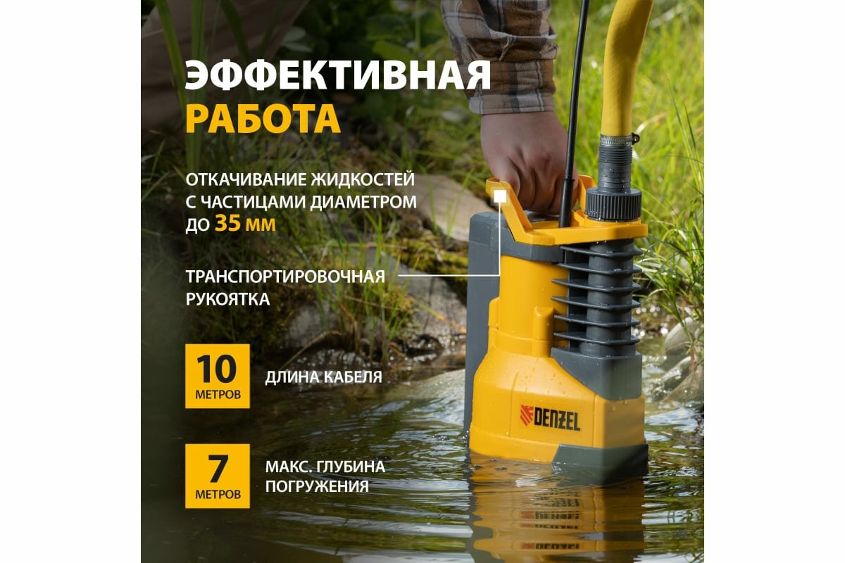 Дренажный насос DENZEL X-PRO DPХ800, 800 Вт, высота подъема 8 м, 13500 л/ч