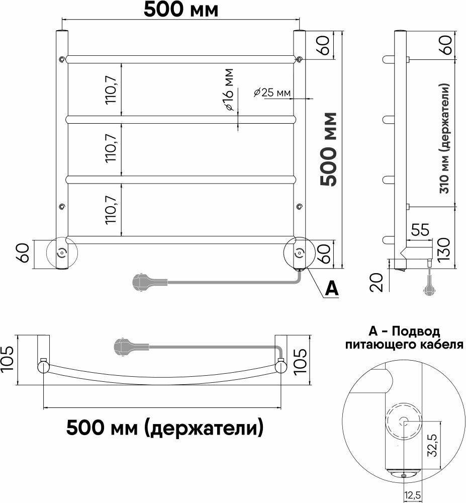 | Теплоноситель электрического полотенцесушителя | сухой |