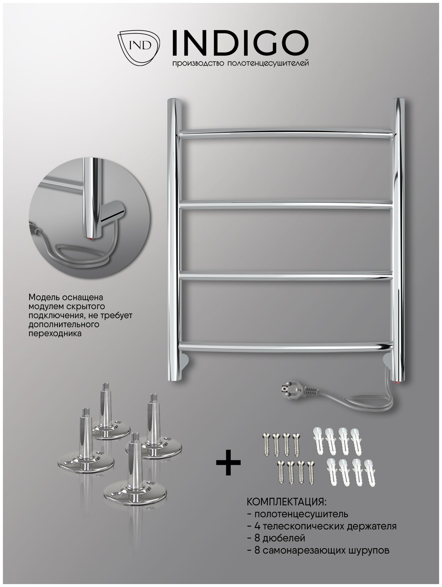 Полотенцесушитель электрический IND (INDIGO) Arc 50/50 Хром (универсальное подключение, скрытый монтаж)