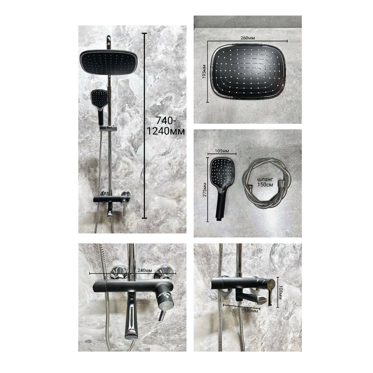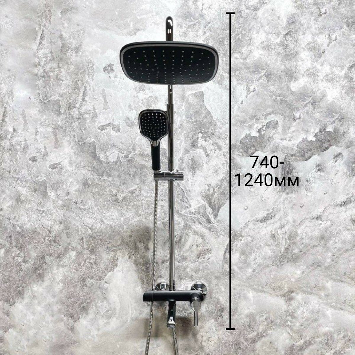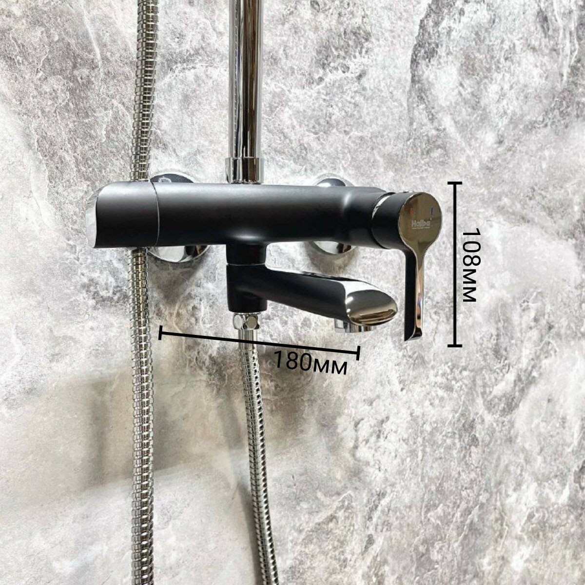 Душевая система Haiba HB24805-7 со смесителем, излив-переключатель на лейку,с верхним душем и ручной лейкой, чёрный/хром