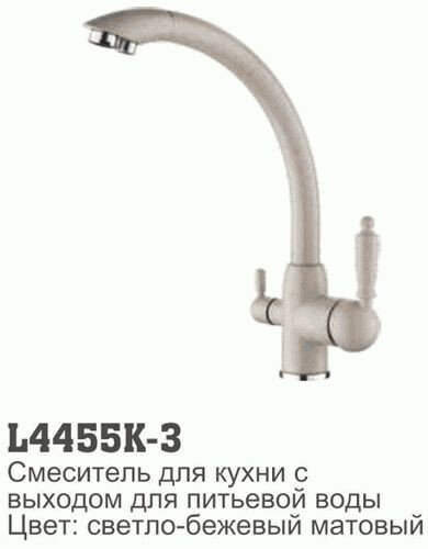 Смеситель для кухни высокий с вых. для питьевой воды, карт.35мм, гайка, бежевый Ledeme, 1/10; L4455K-3