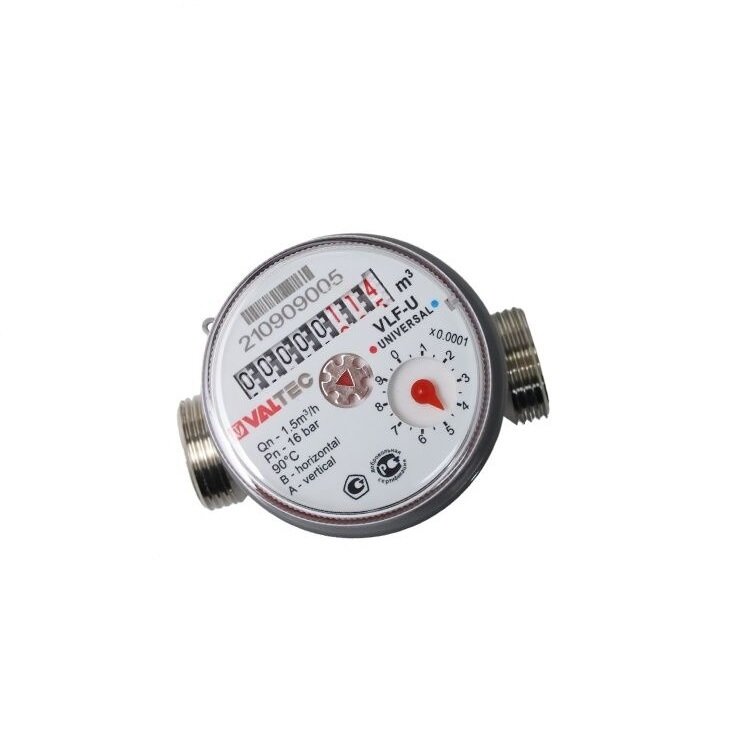 Счетчик для горячей и холодной воды Valtec VLF-15U-L.80 1/2" L=80мм Tmax=90*C 1,5м3, без сгонов