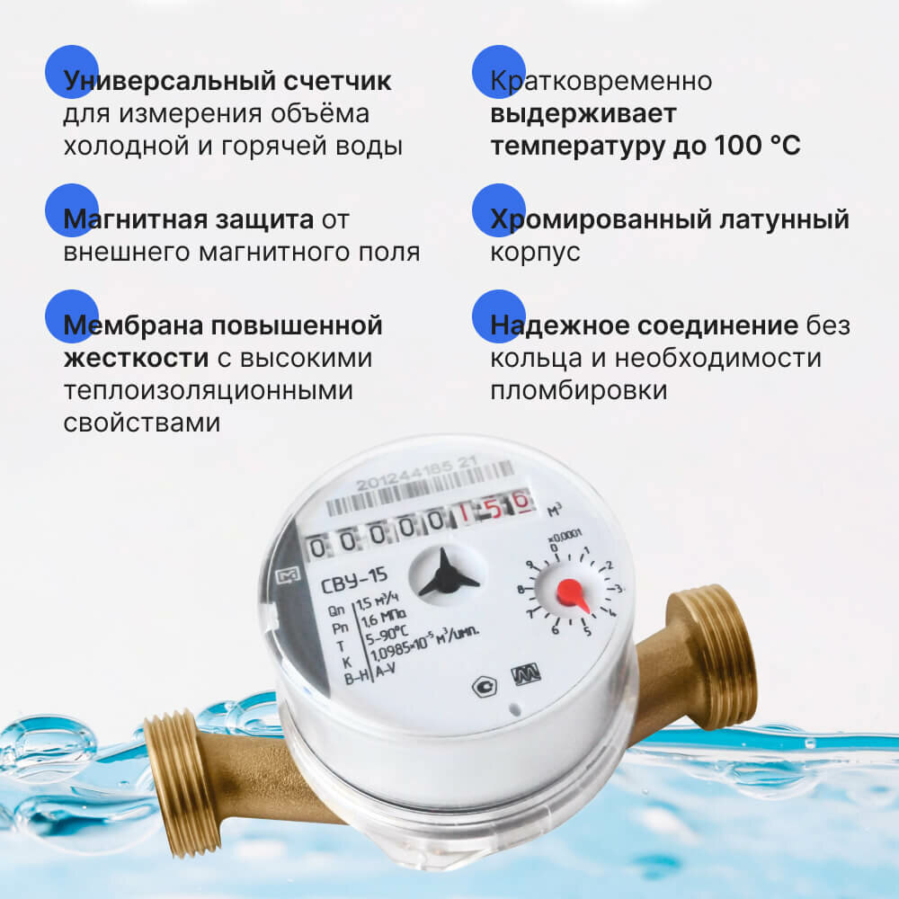 Счетчик воды метер СВУ-15 (Невод) универсальный с кмч