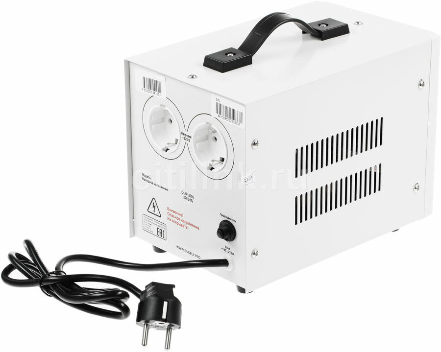 Стабилизатор напряжения однофазный RUCELF СтАР-2000 белый 2000 ВА 1400 Вт 180 мм 290 мм 210 мм 5.5 кг 2 шт.