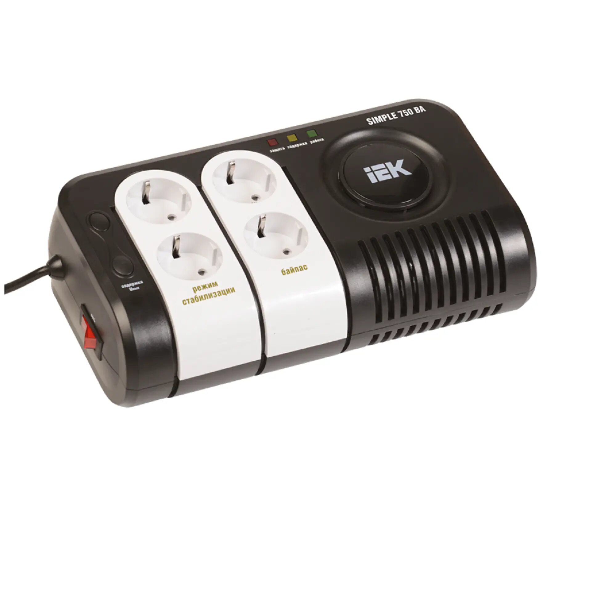 Стабилизатор IEK однофазный 0,75кВа релейный напольный 4 розетки Simple 0,75 кВА бытовой