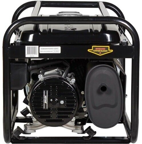 | Плюсы: | Мощности хватает для основных устройств, прочная металлическая рама вокруг генератора, вместительный топливный бак |