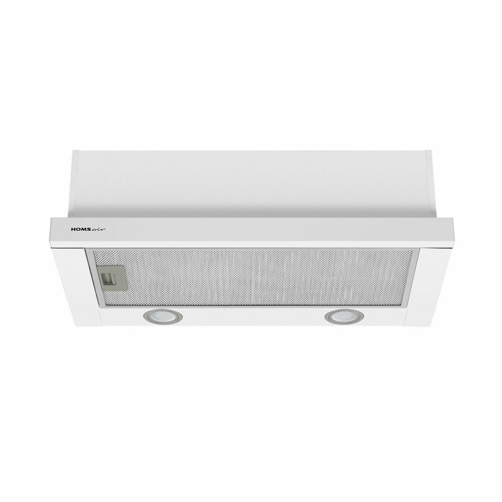 Вытяжка HOMSair Flat 60 White/ встраиваемая, колыбельное управление, 2 скорости, 520 м3/ч, до 20 м2, 45 дБ, угольный фильтр CF110 - 1 шт, ШхВхД: 500х176х280 мм, белый цвет