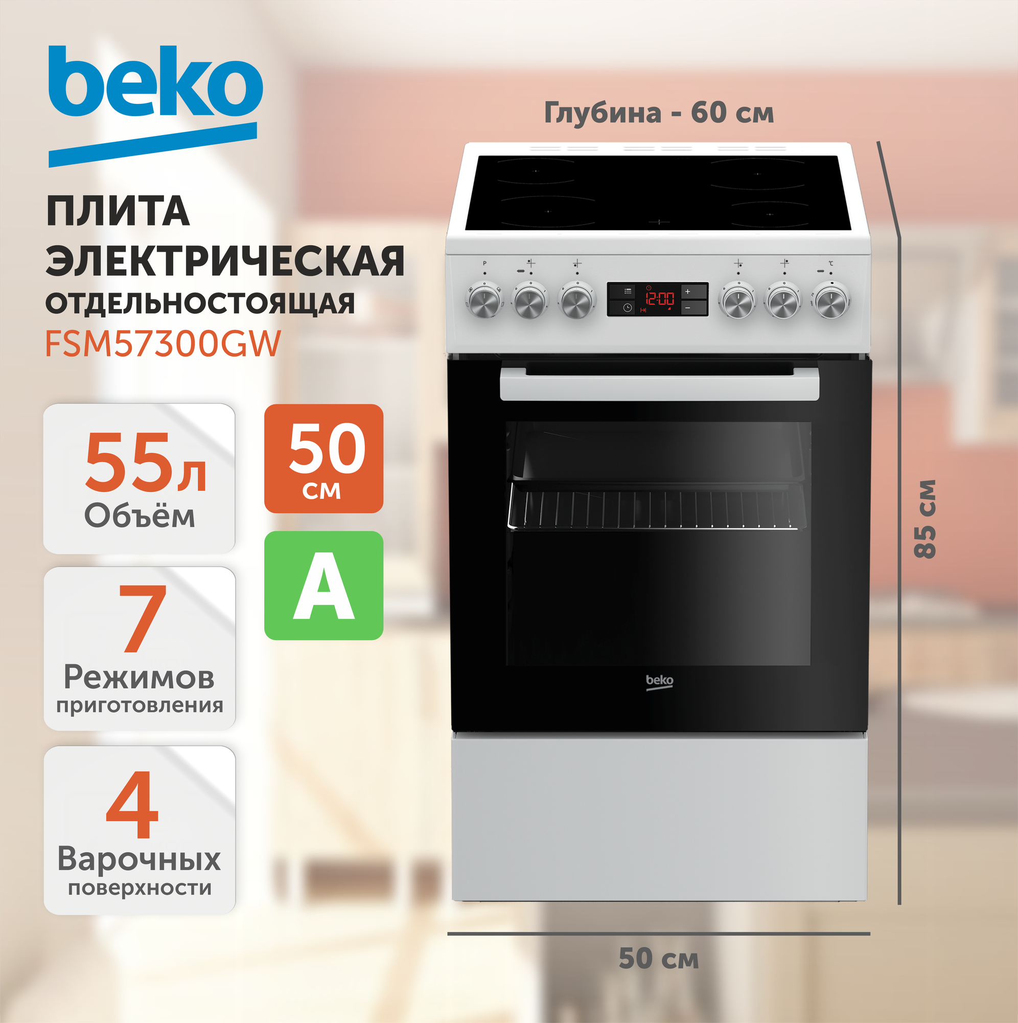 Купить Электрическая плита Beko Fsm57300gw Fsm57300gw .