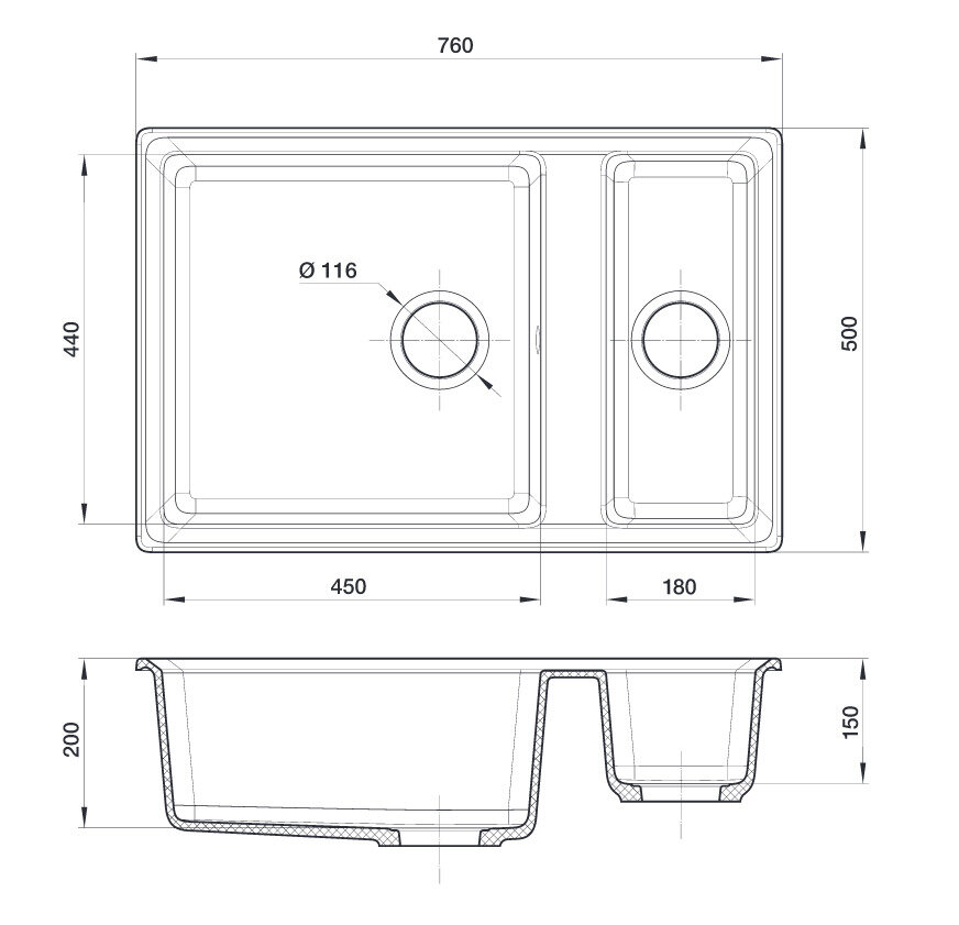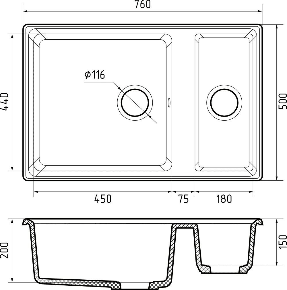 Кухонная мойка GranFest LEVEL GF-LV-760K черный