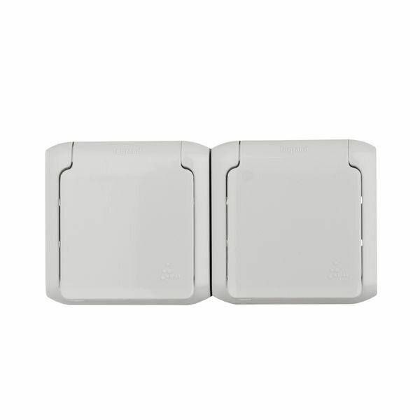 Розетка двухместная QUTEO, открытый монтаж, с заземлением, с крышкой, со шторками, серый | код. 782353 | Legrand ( 1шт. )