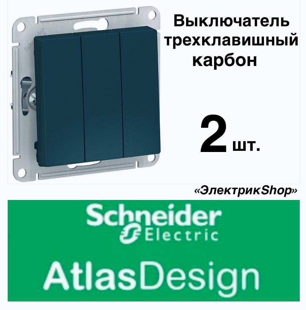 Выключатель трехклавишный Systeme Electric (Schneider Electric) AtlasDesign 10АХ, карбон ATN001031 1шт