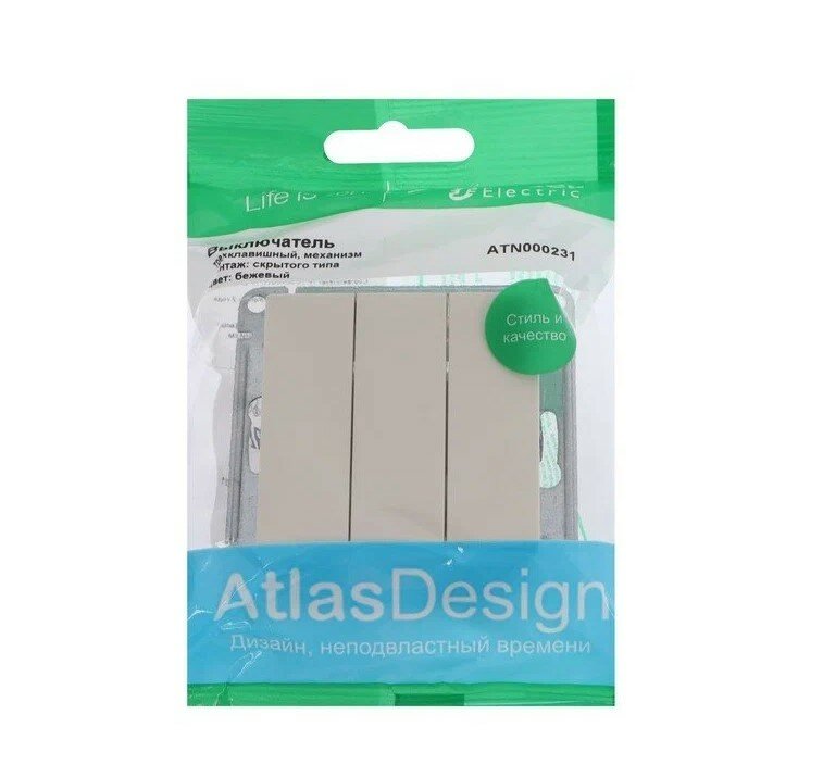 Купить Выключатель 3х1-полюсный Schneider Electric ATN000231 AtlasDesign, 10 А, бежевый