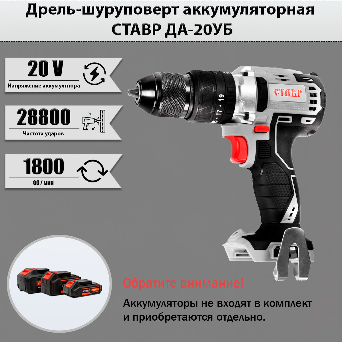 Аккумуляторная ударная дрель-шуруповерт ставр ДА-20УБ, без аккумулятора