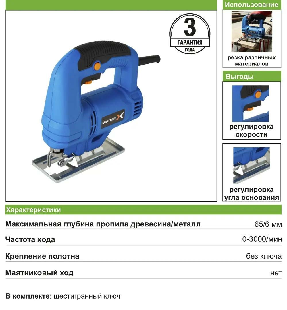 Лобзик сетевой Dexter 500JS2-65.5, 500 Вт интересное: