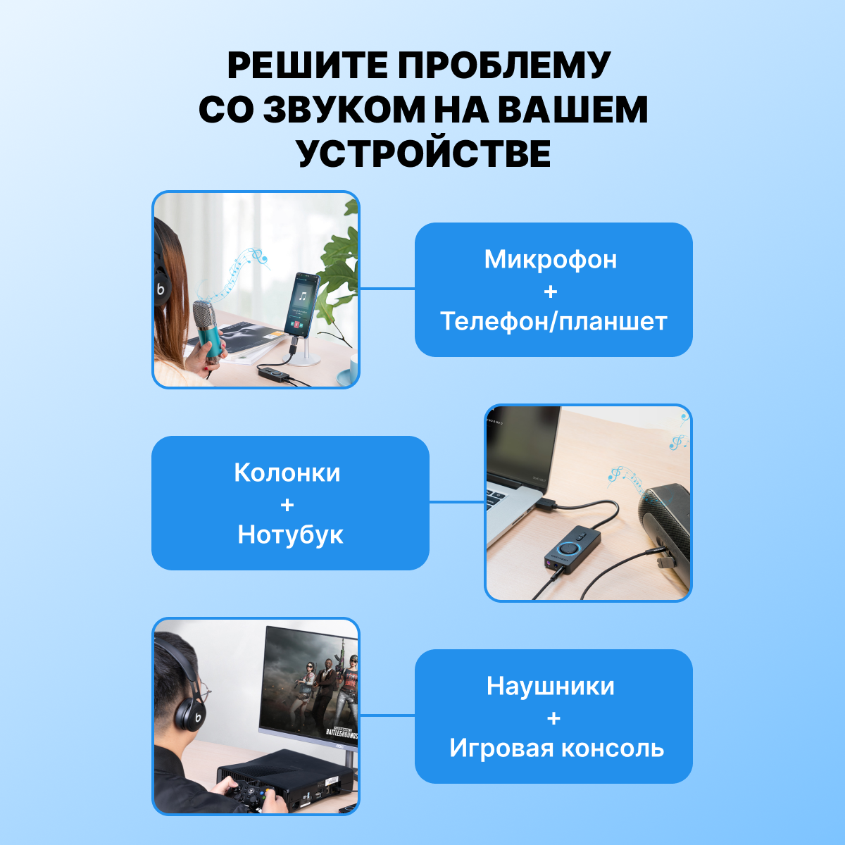 Звуковая карта внешняя MyPads для компьютера, внешний аудиоинтерфейс совместим со всеми типами устройств настройка голоса, эхо