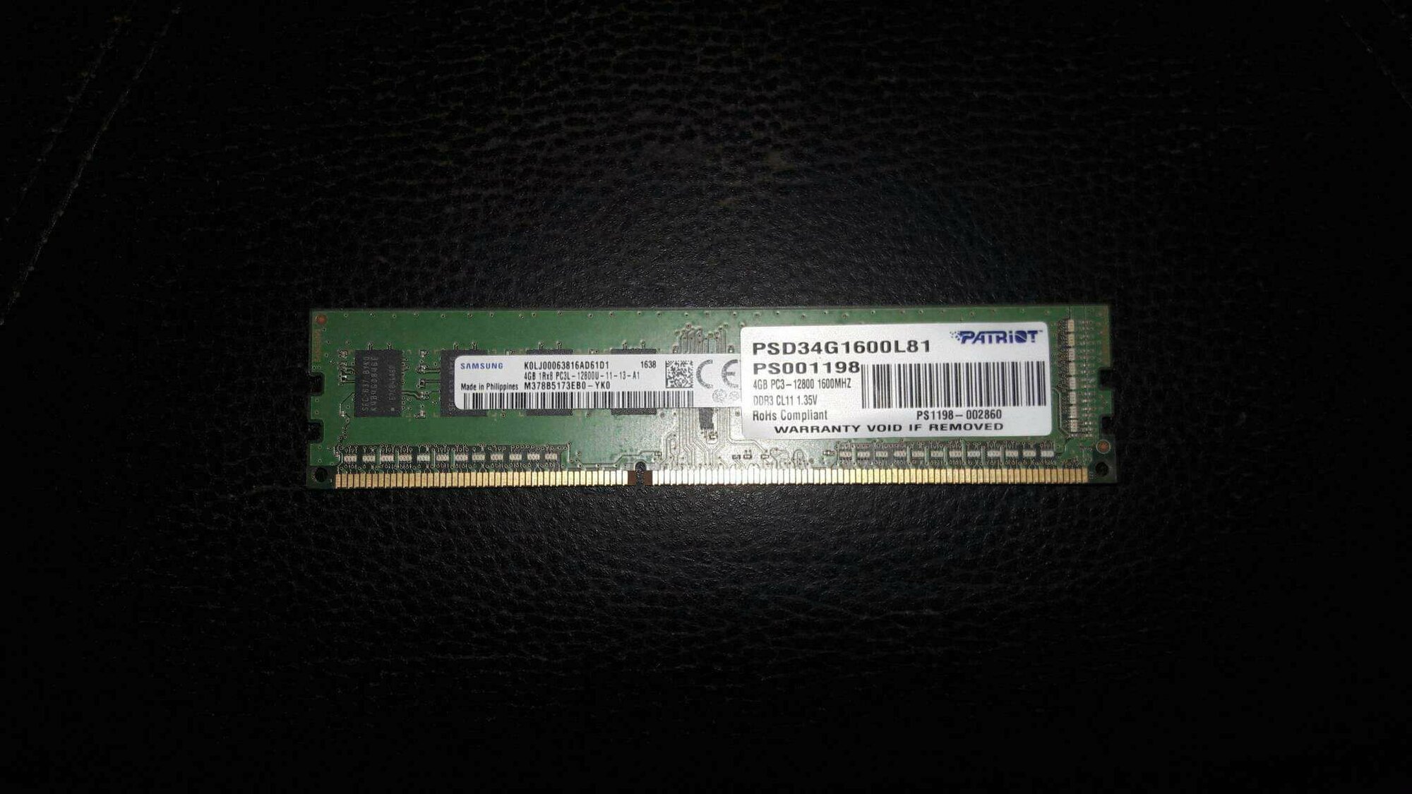 Оперативная память Patriot PSD34G1600L81 DDR3L 1x4 GB DIMM для ПК