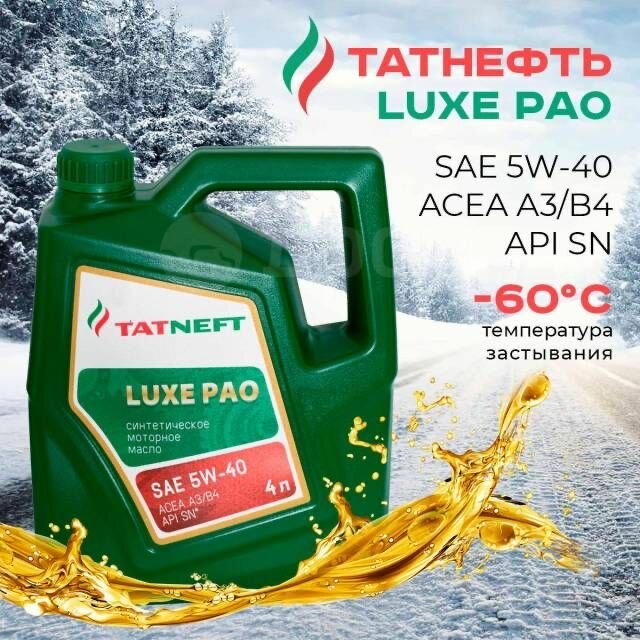 Синтетическое моторное масло Татнефть Масло моторное 5W40 Татнефть LUXE PAO , синтетическое 1 л, 4 л, 1 шт.