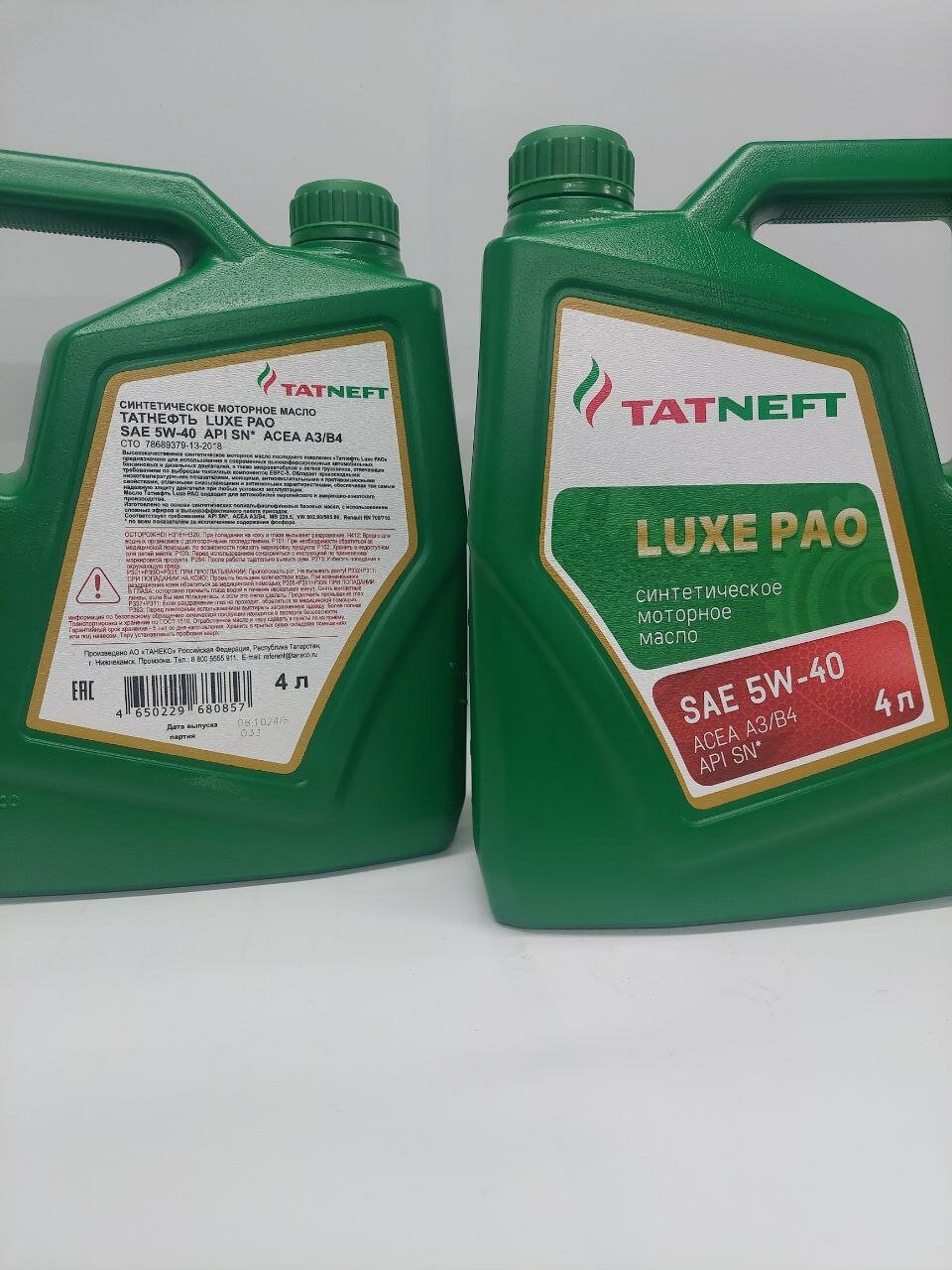 | Минусы: | У меня получился полный обман. Вместо Татнефть LUXE PAO 5W-40, выслали Татнефть LUXE 5W-40. |