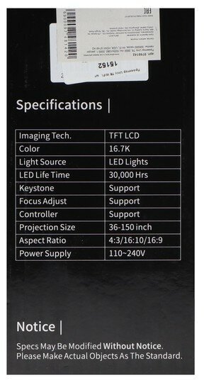 Проектор Umiio P860 1920x1080 (Full HD), 2000:1, 800 лм, LCD, 1.05 кг
