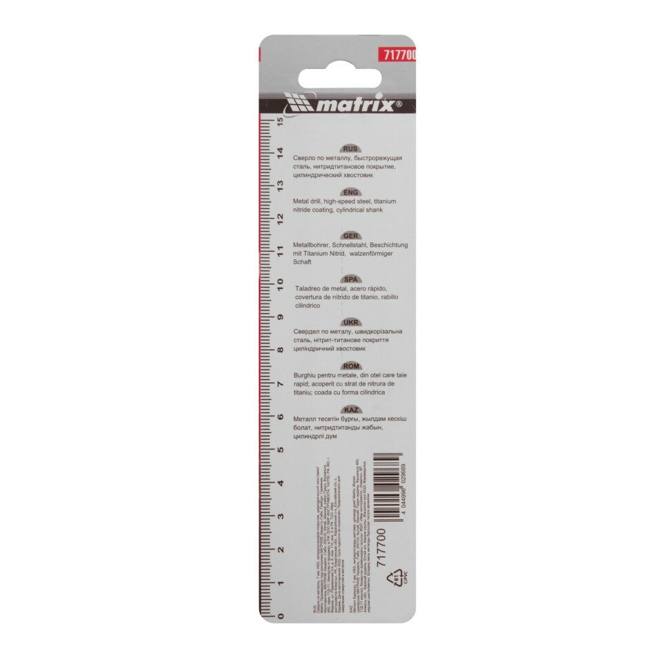 Купить Сверло по металлу MATRIX 717700, 7 мм, HSS, нитридтитановое покрытие, цилиндрический хвостовик