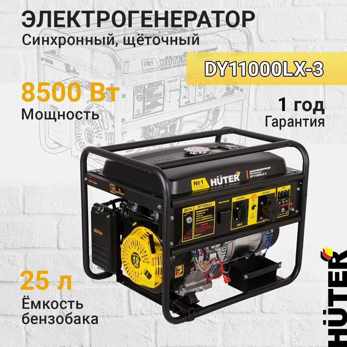 Генератор/электрогенератор/электростартер DY11000LX-3 Huter для стройки/дома/дачи/огорода/мобильного дома интересное: