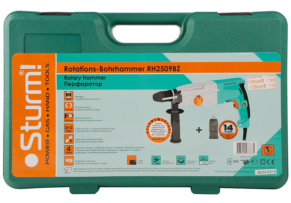 RH2509BZ Перфоратор 920Вт, 3-х режимный, дополнительный быстрозажимной патрон 13мм, Sturm!