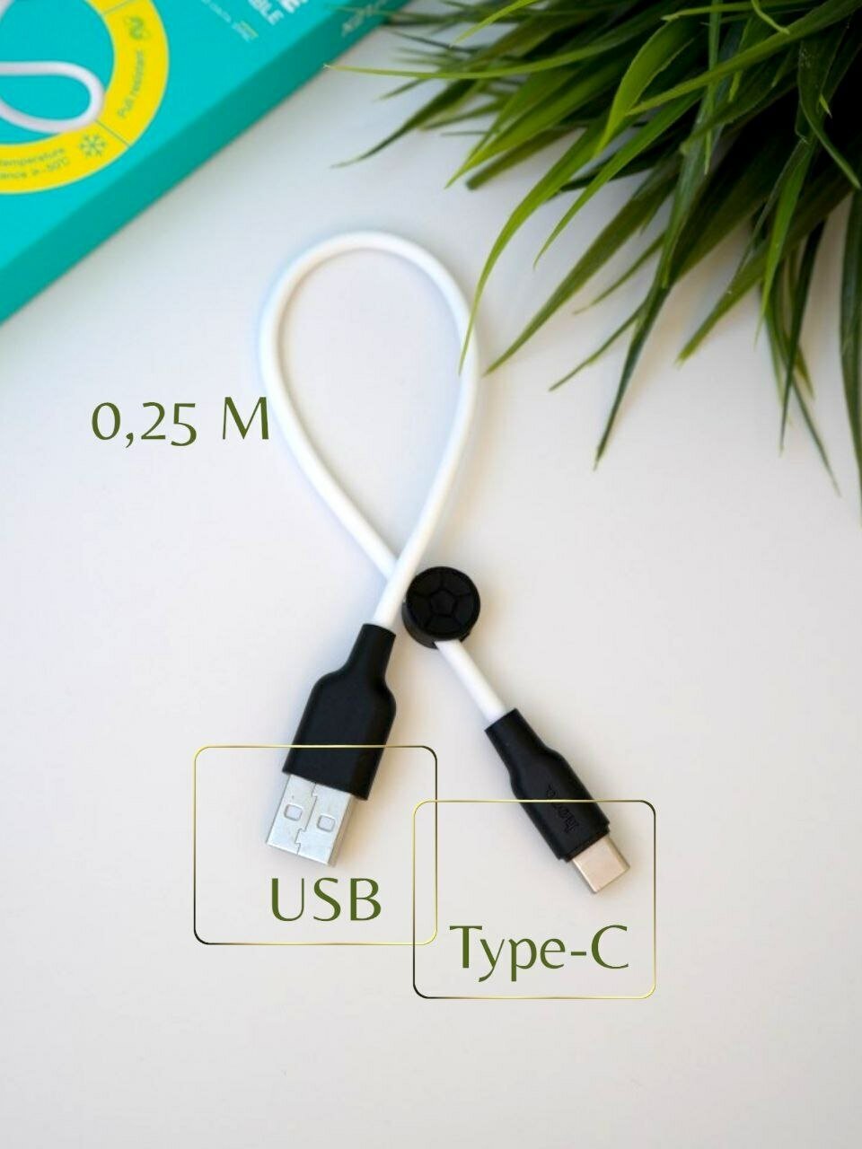 Кабель короткий HOCO X21plus USB на Type-C, 3A, 0.25 метров, для powerbank, зарядки гаджетов и передачи данных