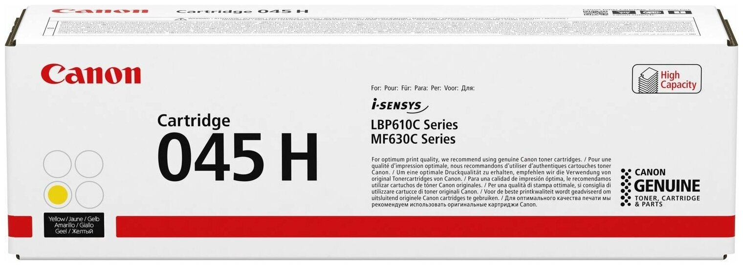 Canon Расходные материалы Cartridge 045H Y 1243C002 Картридж для i-SENSYS MF630. Жёлтый. 2 200 страниц