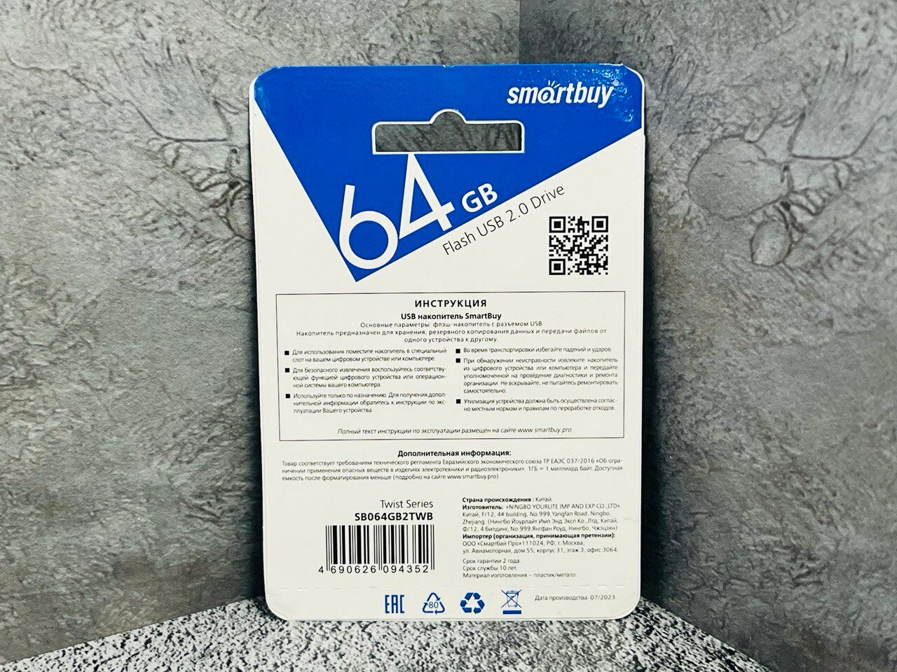 USB флешка Smartbuy 64Gb Twist blue USB 2.0 интересное: