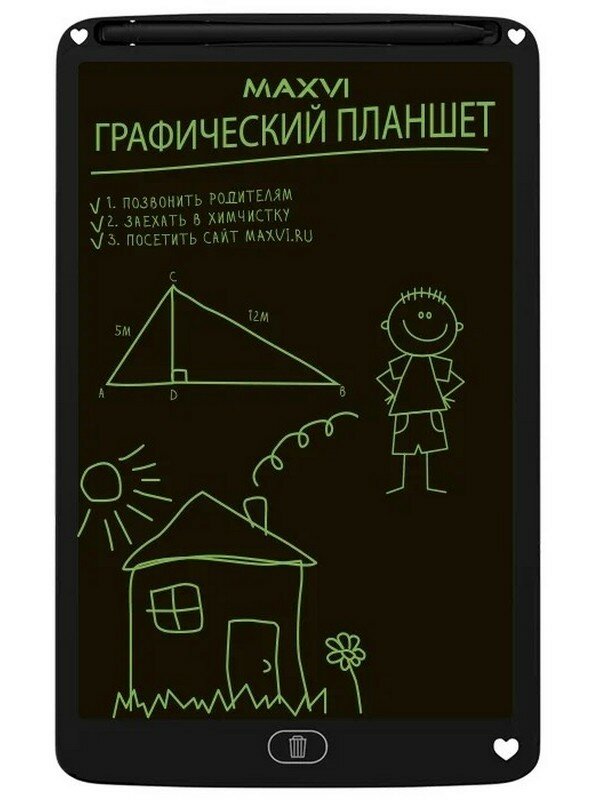 LCD графический планшет для заметок Maxvi MGT-01, черный, 8.5", монохромный
