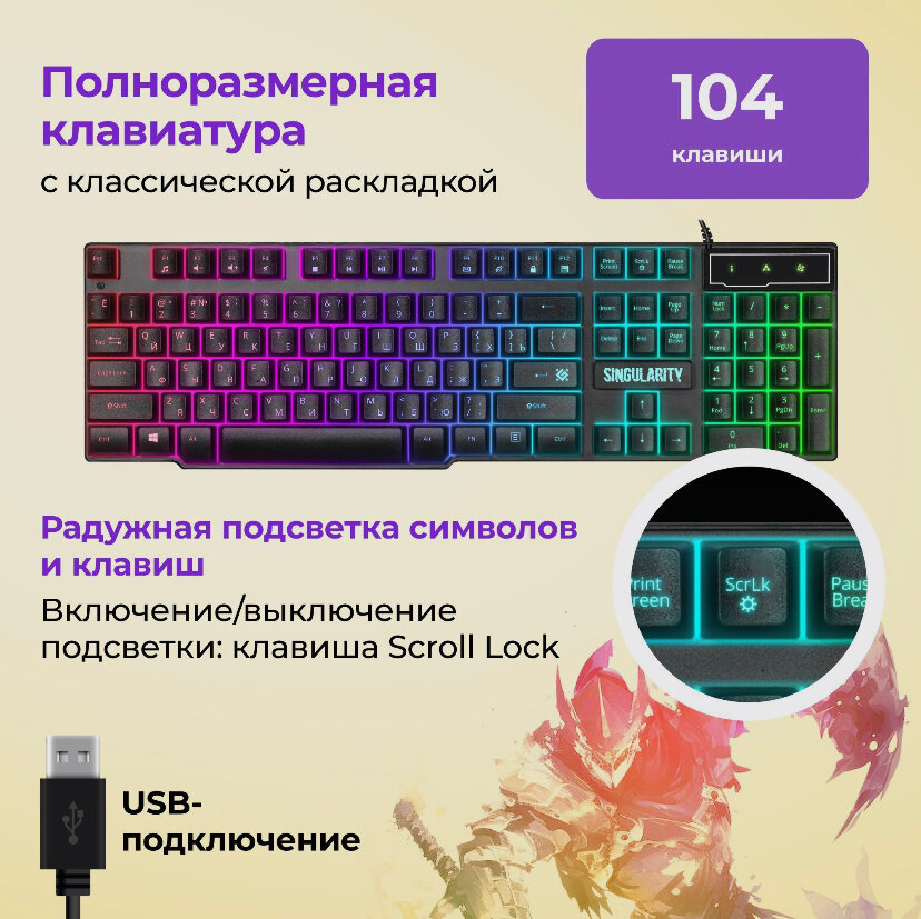 Комплект клавиатура + мышь + гарнитура + коврик Singularity MKP-118, подсветка