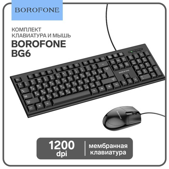 Набор клавиатура+мышь проводной Borofone, Business, BG6, 2400 DPI, мембранная, dpi 1200, цвет: чёрный