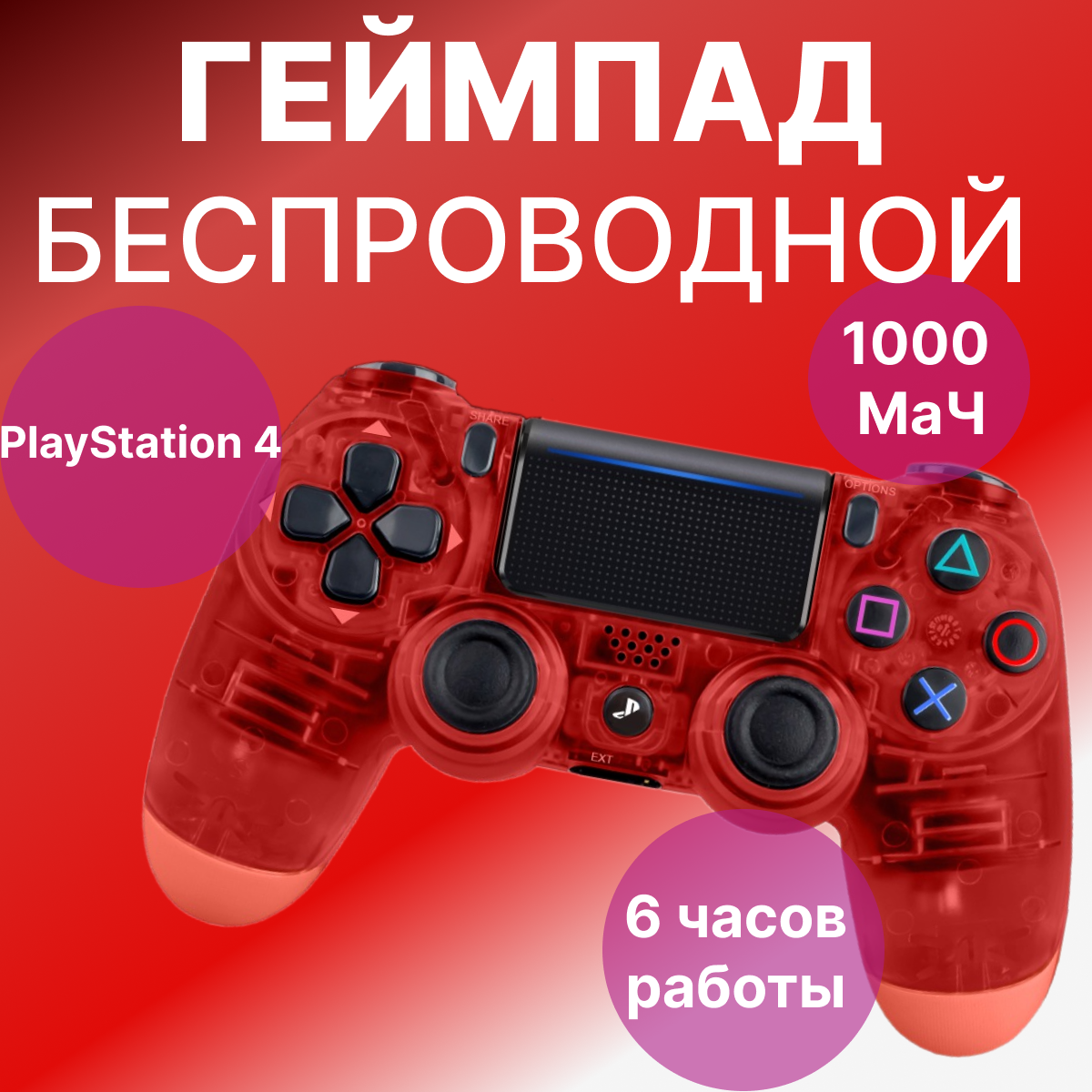 Купить Беспроводной Bluetooth джойстик для PS4 контроллер подходит для Playstation 4 прозрачный красный