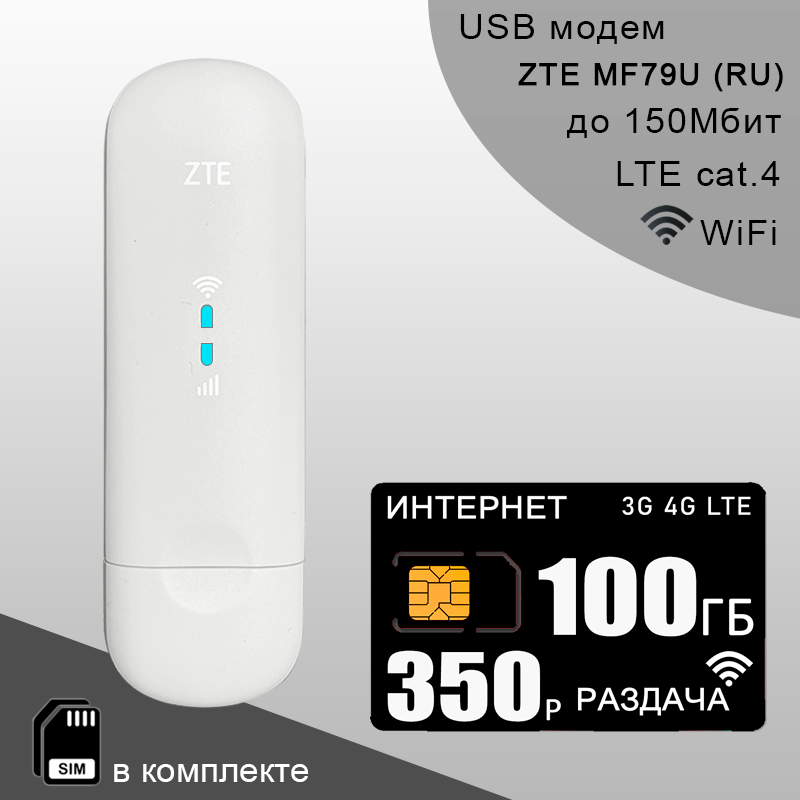 Комплект модем ZTE MF79U (RU) + сим карта для интернета и раздачи, 100ГБ за 350р/мес. интересное: