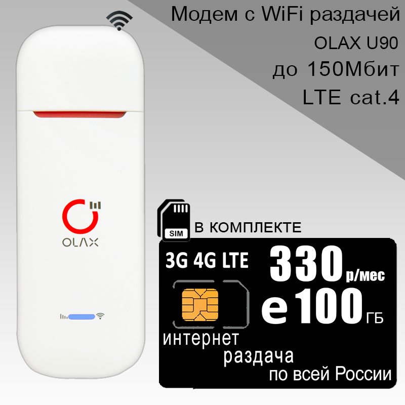 Купить USB Модем OLAX U90 + сим карта для интернета в сети теле2, 100ГБ за 330р/мес