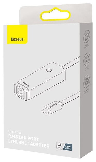 Адаптер-переходник Type-C to RJ45 LAN Port Baseus Lite Series Ethernet Adapter (100Mbps) Grey (WKQX000213) интересное: