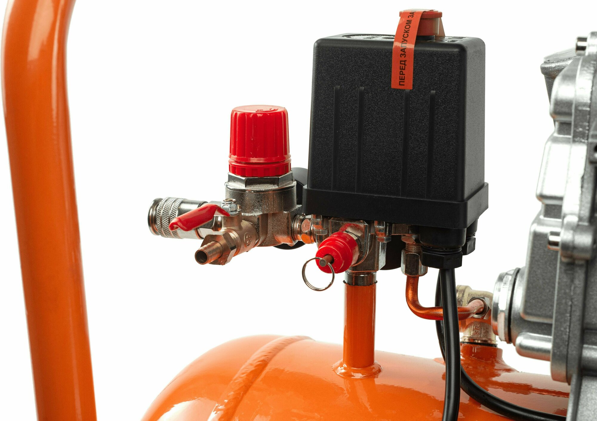 | Плюсы: | Доступная стоимость, большой объём ресивера, окно для отслеживания уровня масла в компрессоре, предохранительный клапан, не вибрирует при работе |