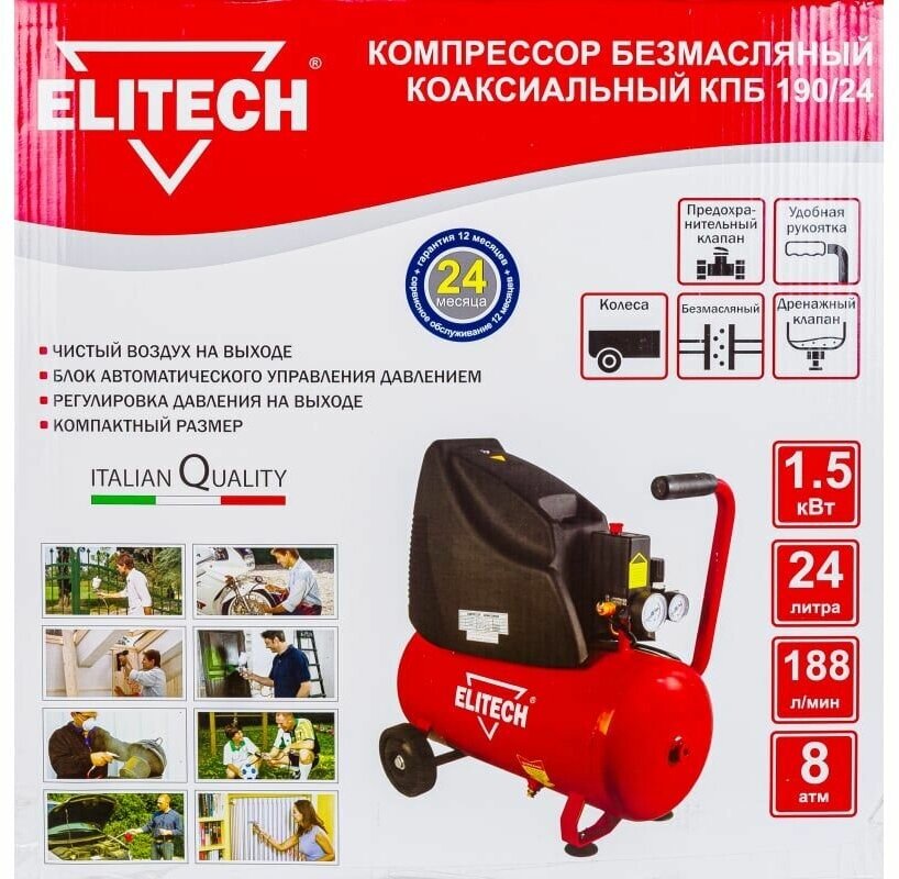 Компрессор безмасляный ELITECH КПБ 190/24, 24 л, 1.5 кВт