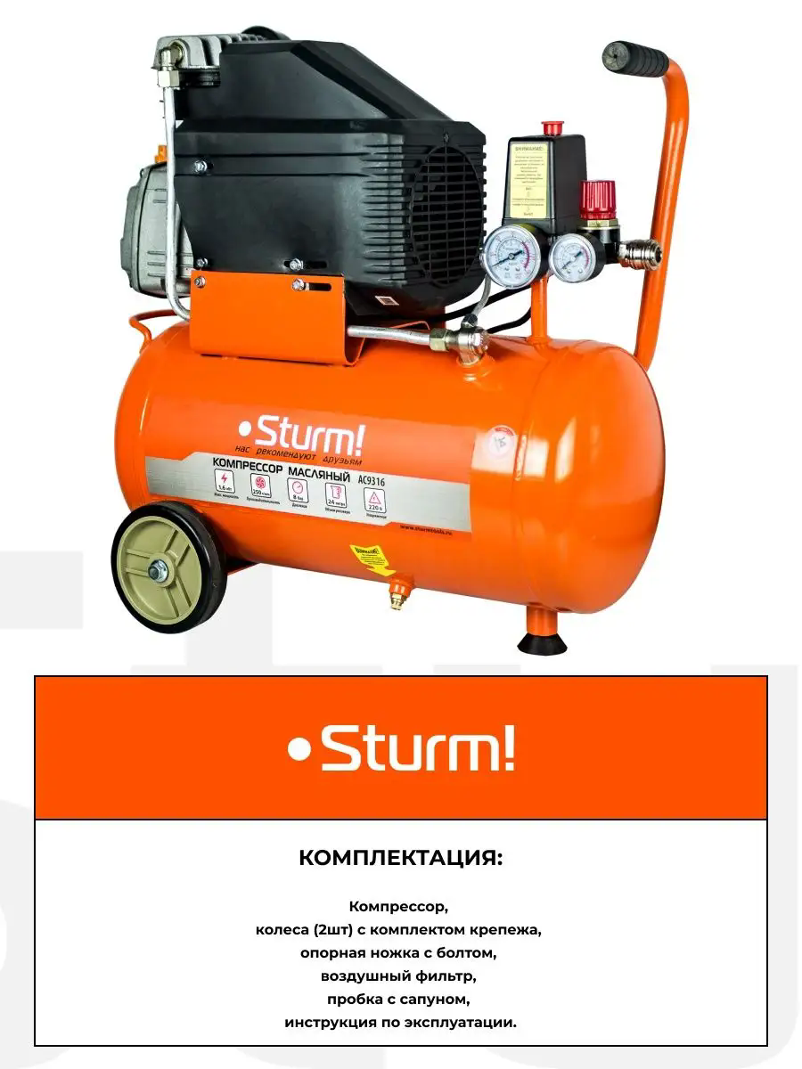 СохранитьКомпрессор масляный Sturm! AC9316 AC9316 интересное: