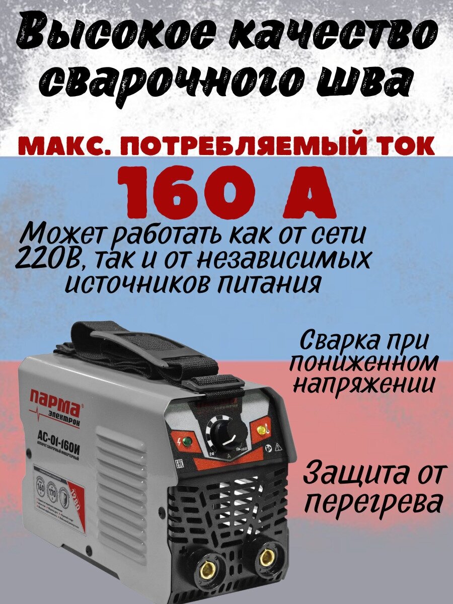 Ниже Вы можете прочитать отзывы на Сварочный аппарат парма АС-01-160И, инвертор [02.007.00018], ознакомится с подробными характеристиками, посмотреть интересные обзоры и фотографии на Сварочный аппарат парма АС-01-160И, инвертор [02.007.00018].