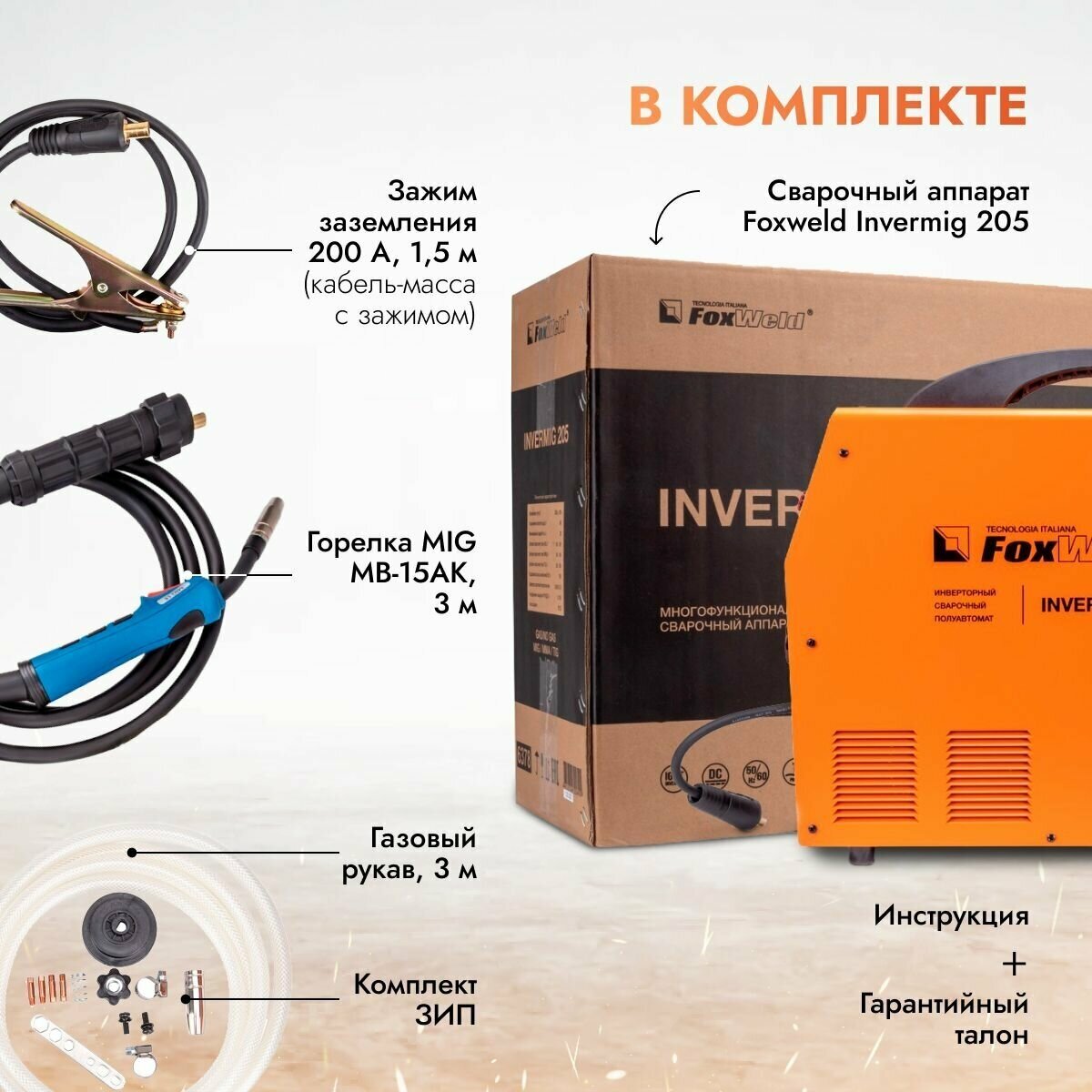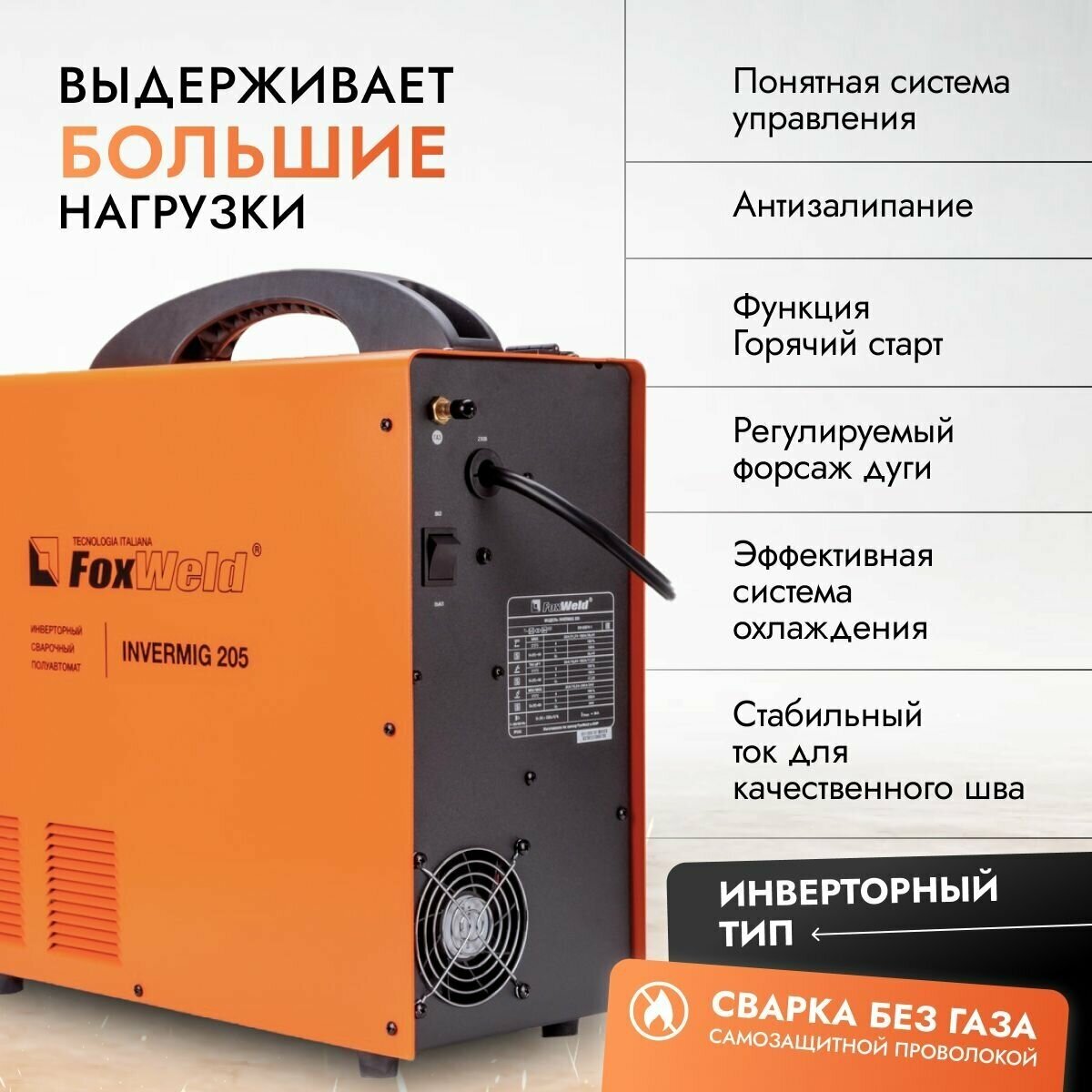 Foxweld Сварочный полуавтомат Invermig 205 полуавтоматический инверторный mig mag, сварка без газа, с газом, варит электродом, LIFT TIG