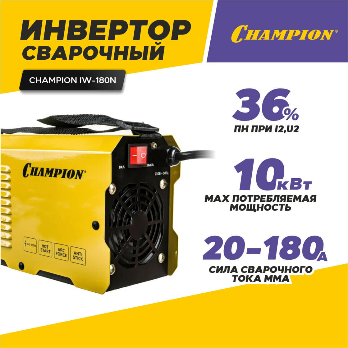 Сварочный аппарат полуавтомат CHAMPION IW-180N / сварочный инвертор ручной (ММА, ток 20-180 А) интересное: