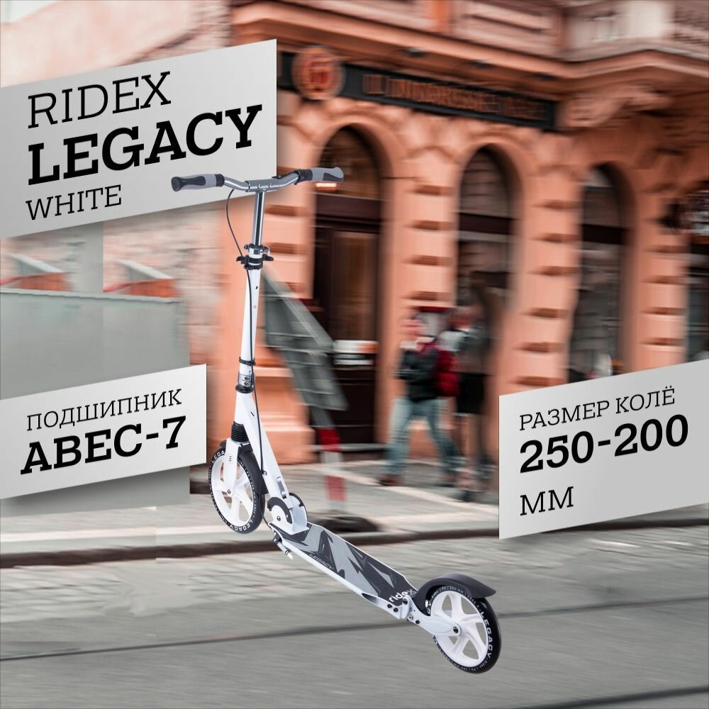 Купить RIDEX Самокат 2-х колесный Legacy 250/200 мм, ручной тормоз, белый УТ-00018380