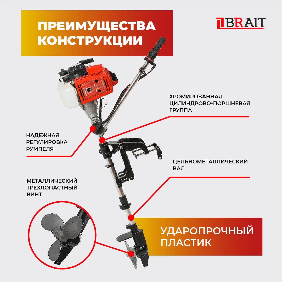 Мотор лодочный BRAIT BOM-63 (2,2 кВт 3.5 л.с. объем 63см) интересное: