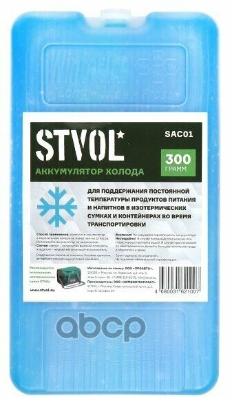 СохранитьАккумулятор холода STVOL пластиковый 300 гр (мин темп. поддержания 4 2 ч) STVOL арт. sac01 интересное: