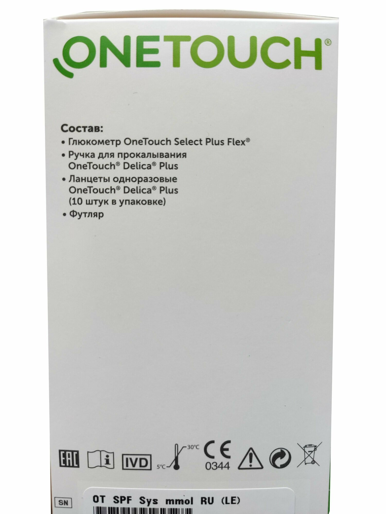 | Комплектация | - глюкометр OneTouch Select Plus Flex(с батарейками); - ручка для прокалывания OneTouch Delica; - стерильные ланцеты OneTouch Delica (10 шт.); - руководство пользователя; - гарантийный талон; - краткое руководство пользователя; - футляр. |