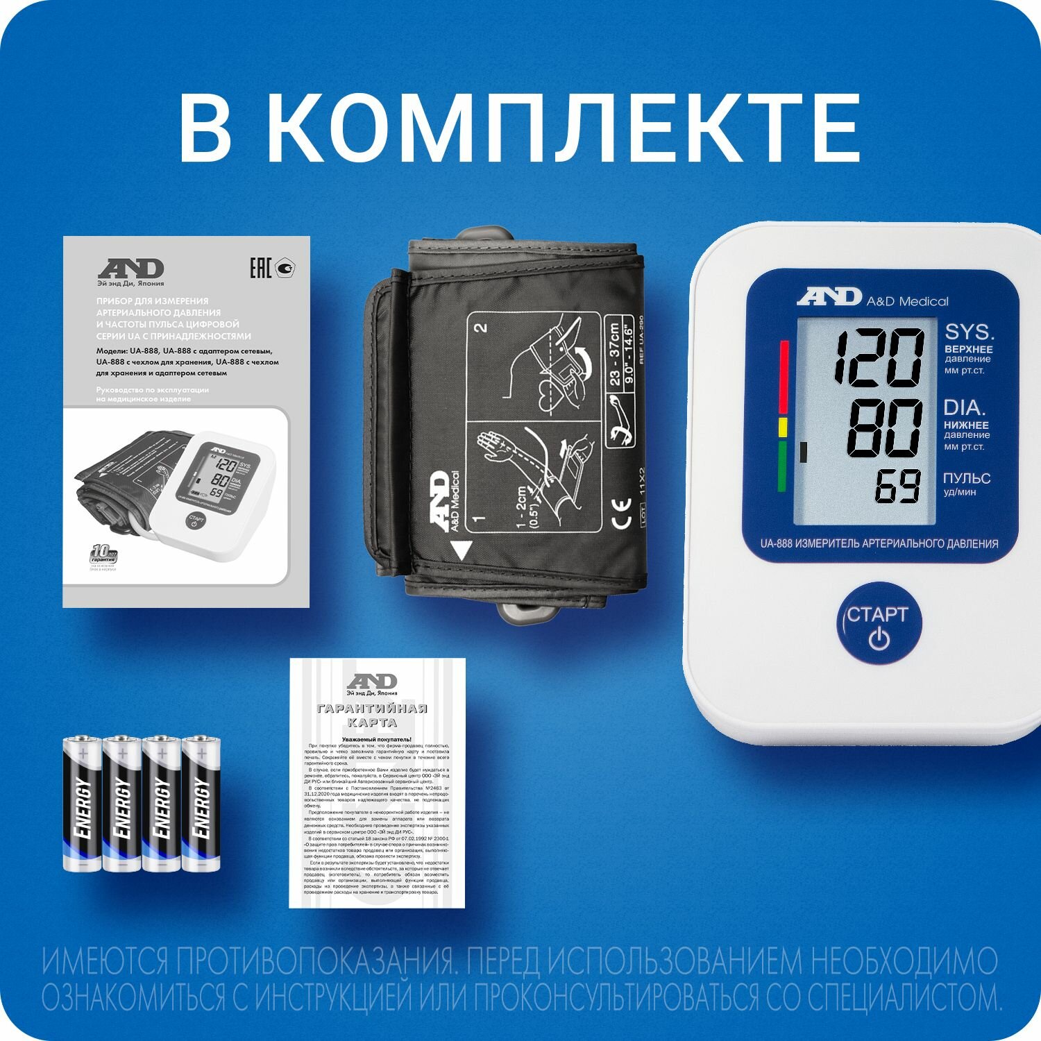 Автоматический тонометр AND UA-888 эконом без адаптера / технология IntelliSense / память на 30 измерений / индикатор аритмии / дисплей с подсветкой интересное: