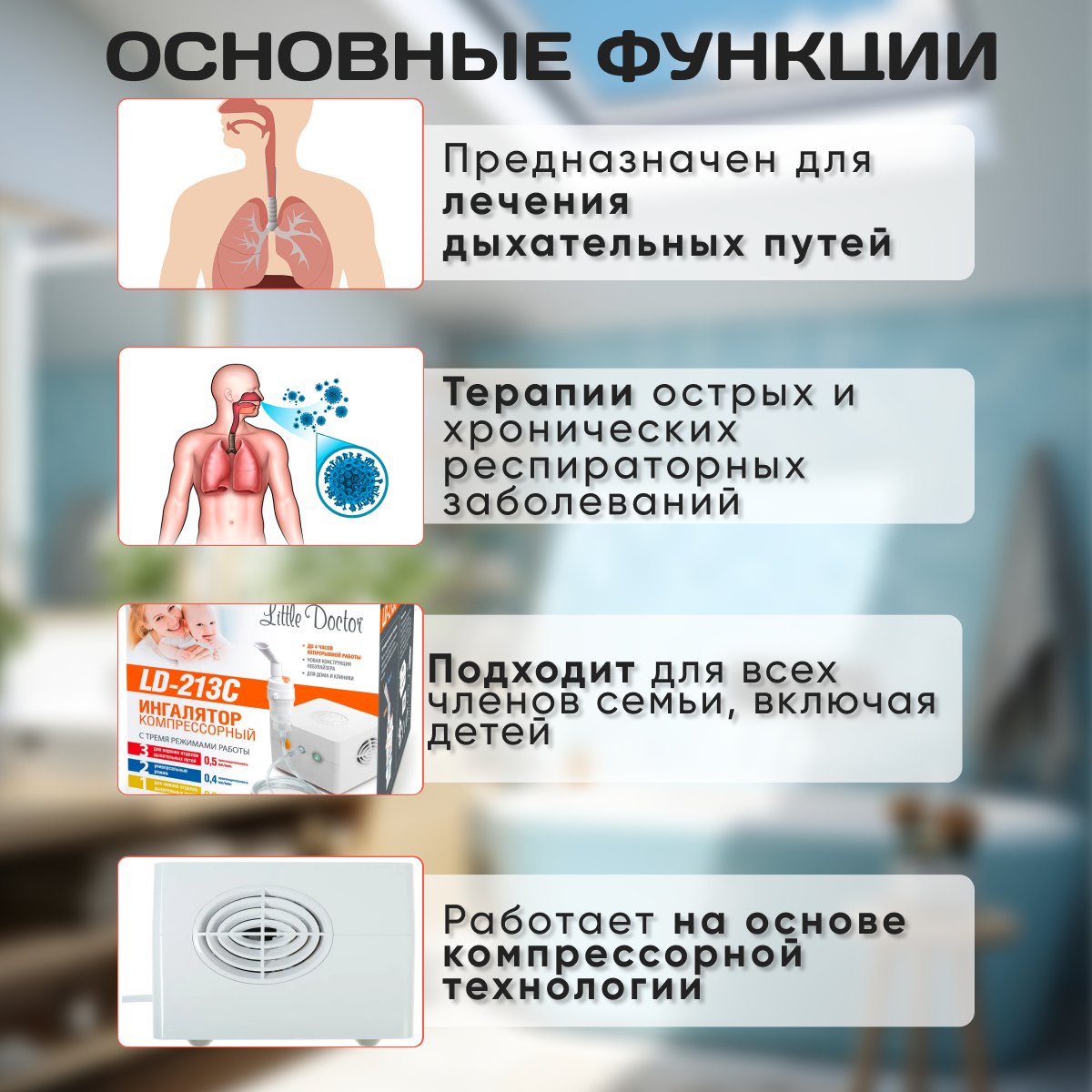 Ингалятор компрессорный для взрослых и детей Little Doctor LD-213С, 3 режима работы, имеет РУ
