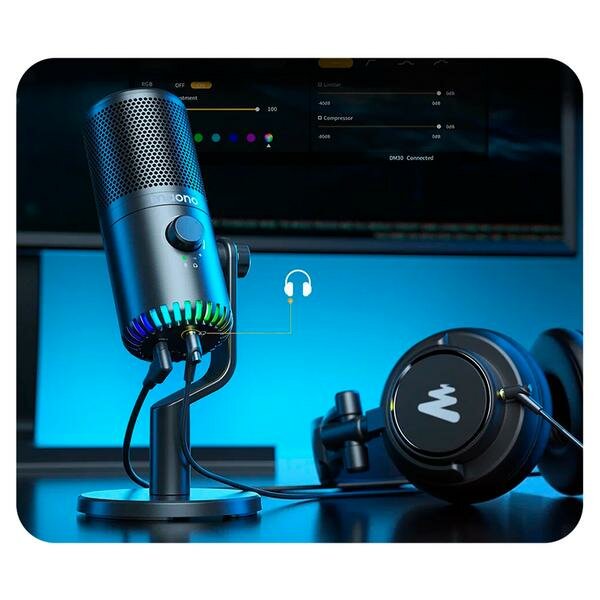 Maono DM30, конденсаторный USB микрофон, частота дискретизации 24bit/48kHz, ПО Maono Link, в комплекте подставка и кабель